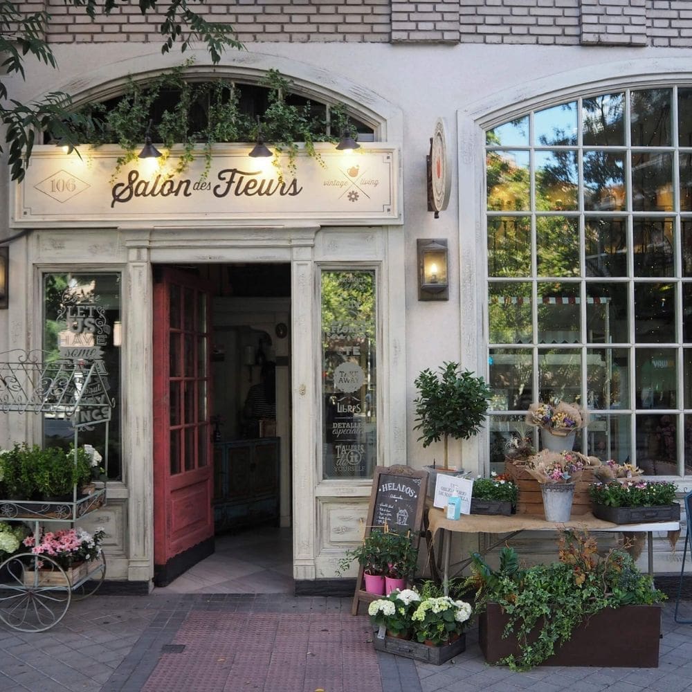 Salon des Fleurs, una cafetería que combina la elegancia de una floristería con el encanto de una cafetería vintage en pleno corazón de Madrid. Desde el momento en que cruzas